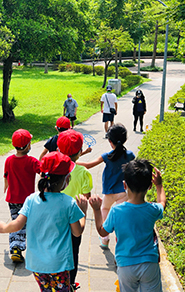 我們有全台北最豐富大自然資源的大安森林公園,孩子們除了跑跳之外,還能用五官感受自然界的變化,穿雨衣在森林中踩水玩耍。
