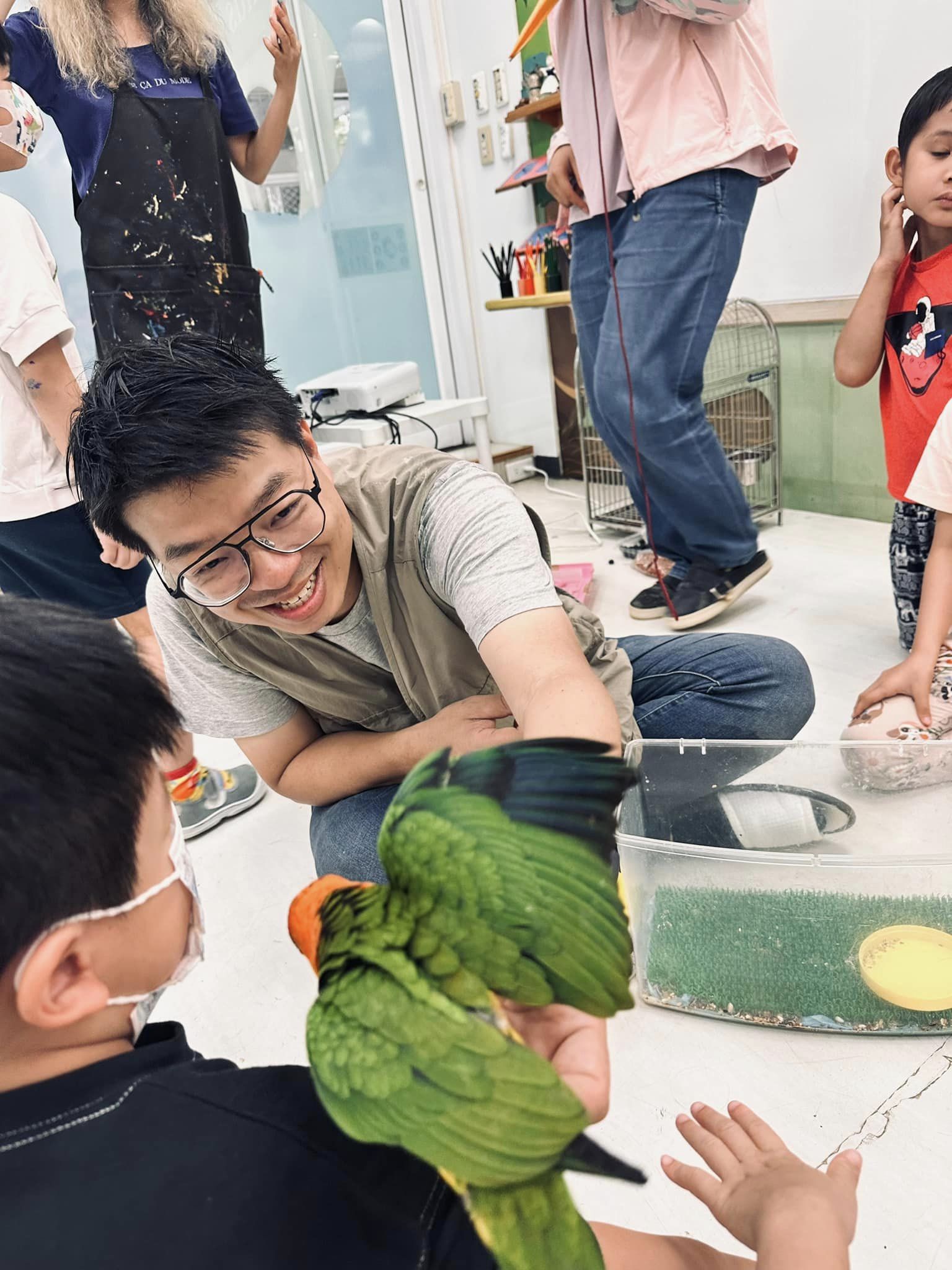 Experts teach children about insect characteristics and behaviors, with hands-on feeding sessions being a highlight.